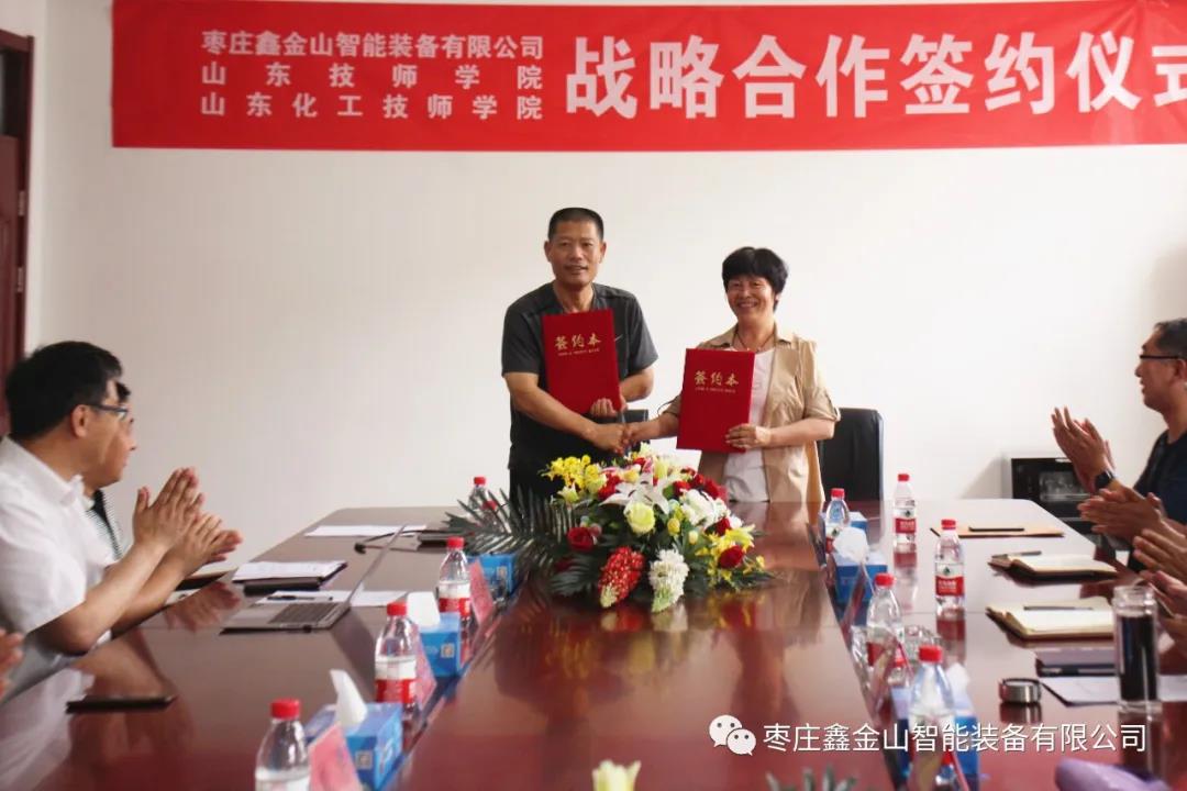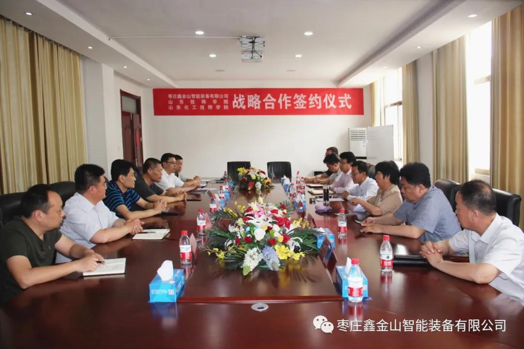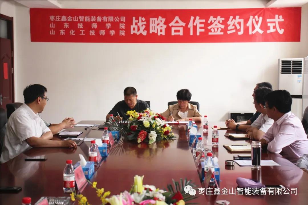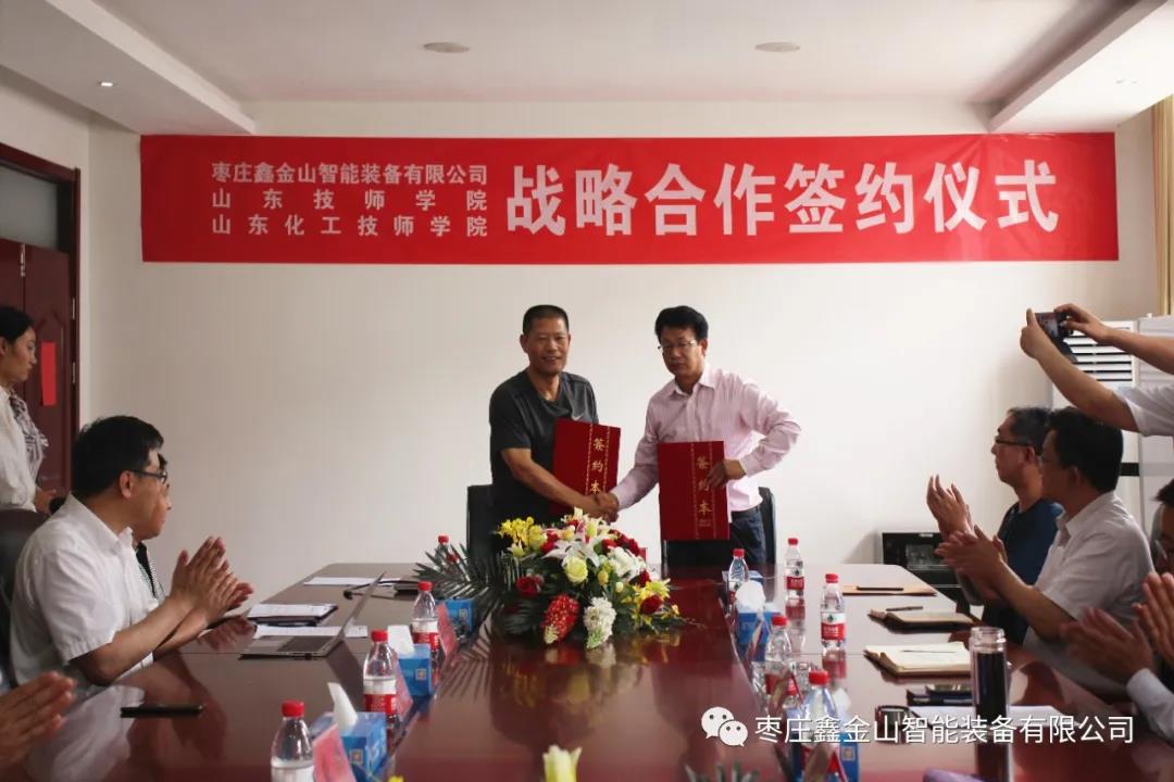 導讀:為進一步強化校企合作,推動產學研深度融合。5月25日,棗莊鑫金山智能裝備有限公司與山東技師學院、山東化工技師學院戰略合作簽約儀式在鑫金山公司總部隆重舉行。