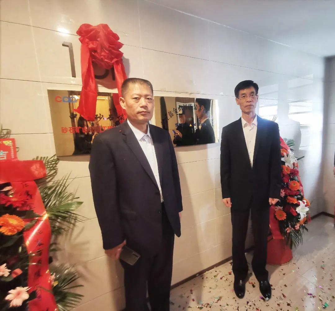 由中國砂石協會會長胡幼奕和棗莊鑫金山智能裝備有限公司董事長孫中巖共同為鑫金山華中事業部揭牌。
